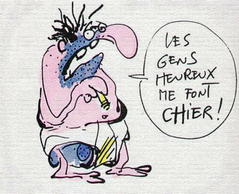 Je suis ouvert aux critiques, aux petites combines que j'ignore, mais je rentre dans le lard de ceux qui se la pètent. Je n'aime pas non plus les compliments mielleux. Bref, les gens heureux me font chier !